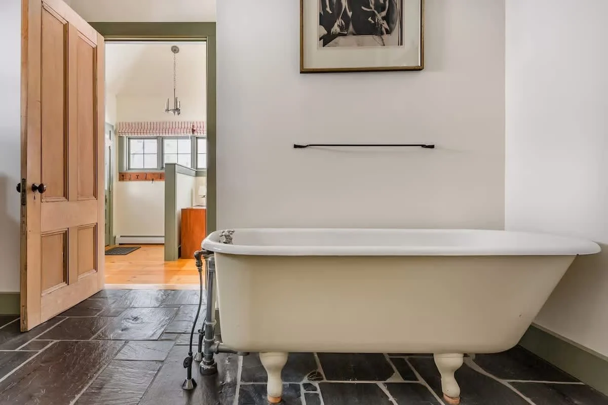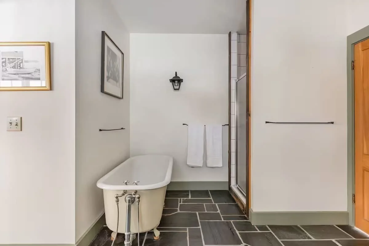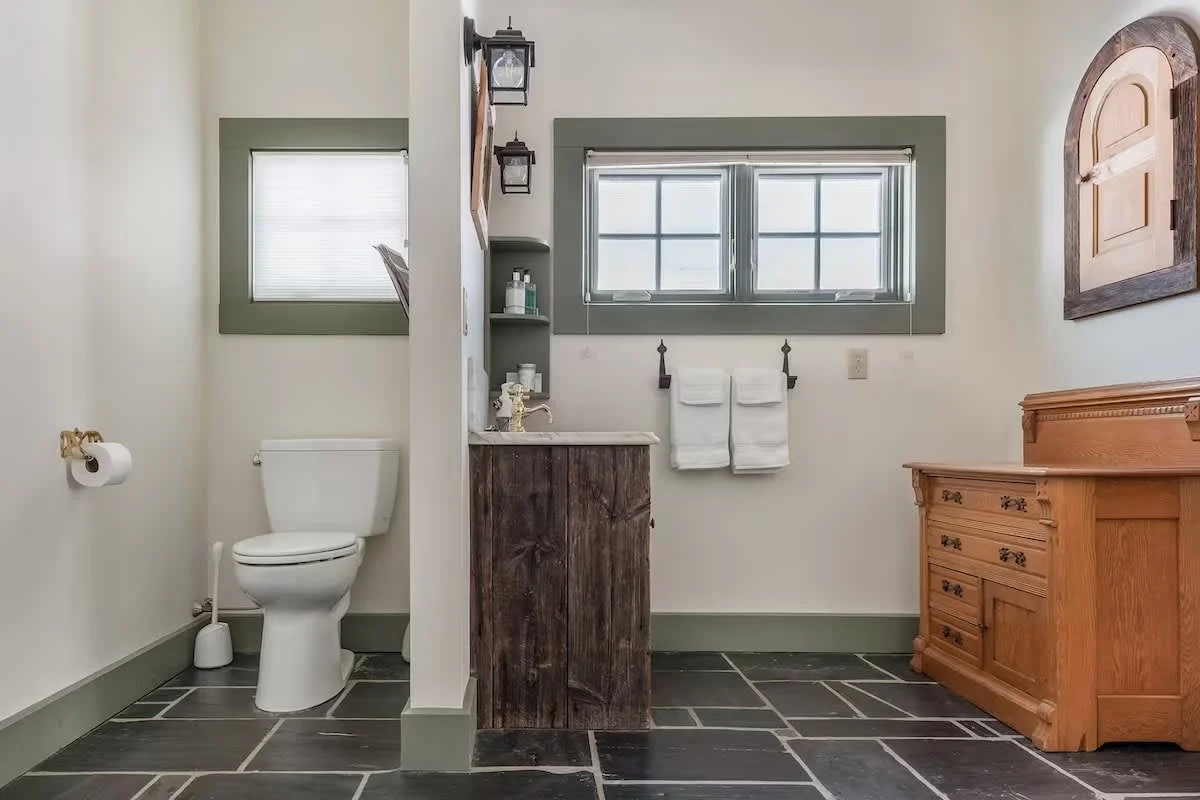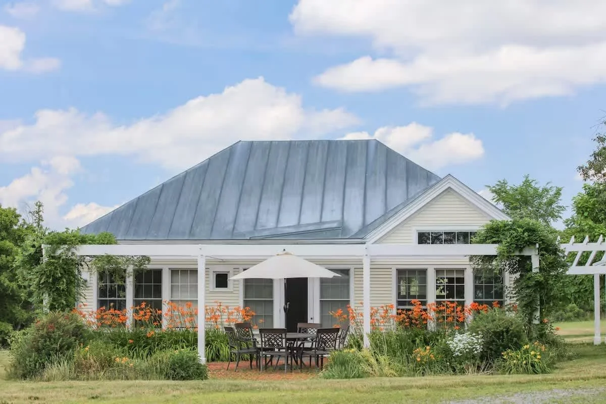 Our inviting Guest Cottage is 865 square feet of sun splashed peace. The cottage features serene sitting room with a comfortable full sized pull out sofa, television and a desk; a well-appointed kitchenette with dining area; and a gorgeous bedroom with king sized bed. The large bathroom includes a tiled shower, clawfoot tub, and a radiant-heated stone floor.
